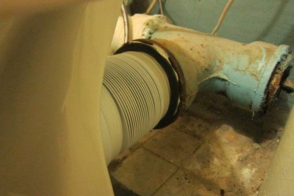 Outro ponto crucial é o aperto absoluto de todas as juntas de topo e a instalação rígida de fixadores. É especialmente importante prestar atenção à área de conexão. corrugações à tomada do banheiro.
