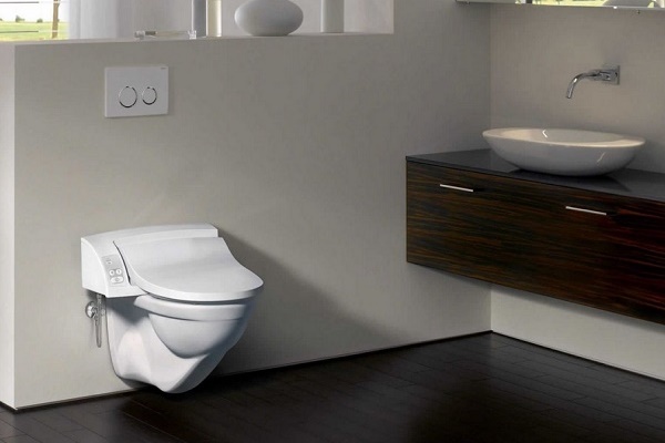 Os banheiros domésticos não são encorajadores com grandes dimensões; esse dispositivo neles geralmente não é colocado em lugar algum. Mas há outra opção - uma tampa de bidê com funcionalidade avançada. Basta instalá-lo em vez do assento normal do vaso sanitário e você obtém um conveniente sistema dois em um.
