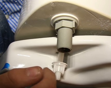 O tanque pode ser acoplado ao vaso sanitário de várias maneiras. Os fabricantes geralmente não colocam fixadores diretamente no orifício de drenagem, mas fixam os parafusos nas laterais.