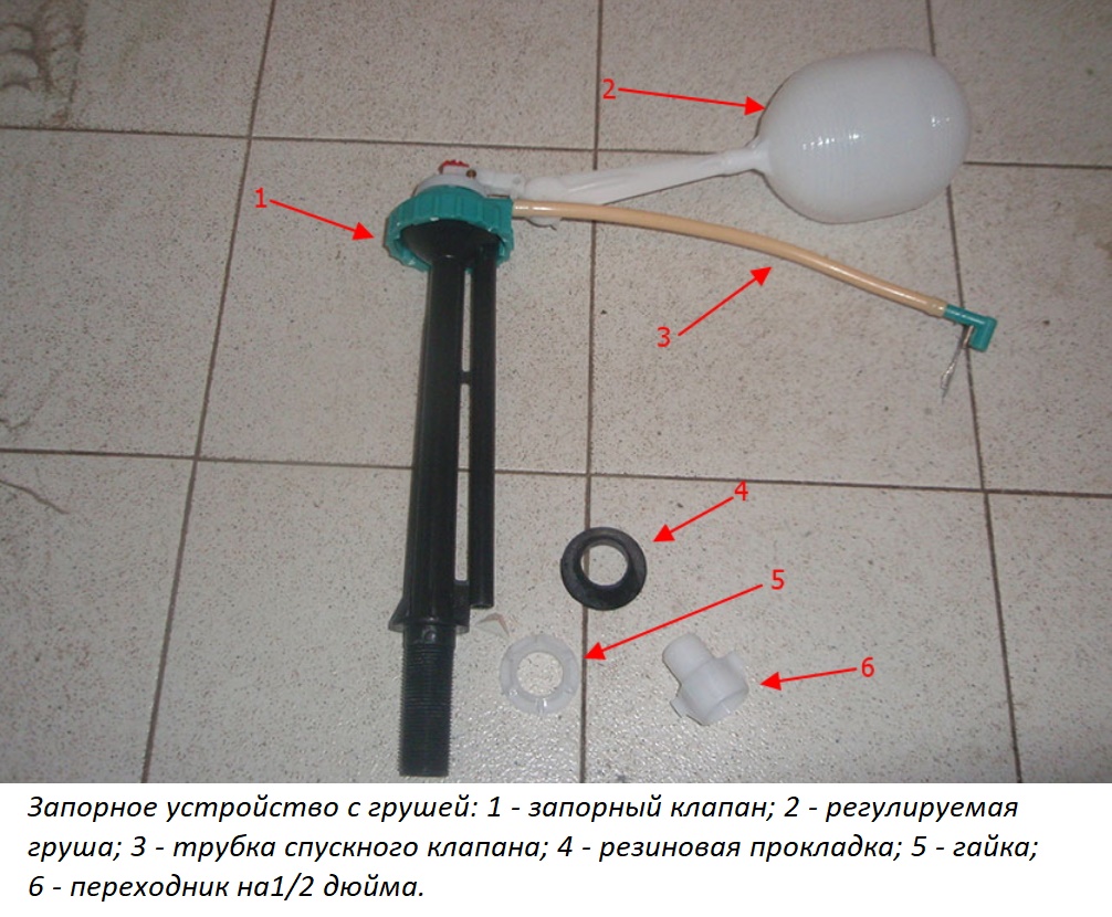 Interno tanque de drenagem completo diferente em diferentes modelos. O mecanismo pode ser um plugue elementar com uma boia ou um cartucho que inclui todas as ferramentas necessárias para a drenagem ao mesmo tempo.