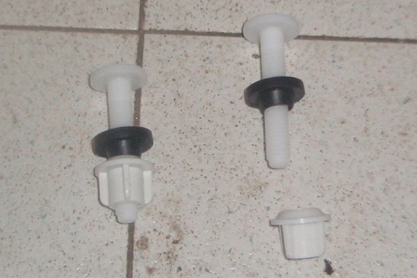 Depois, desaparafuse as porcas de fixação embaixo do vaso sanitário. Se o encanamento estiver no banheiro por muitos anos e a sala estiver constantemente úmida, os parafusos com a porca podem enferrujar tanto que seu desaparafusamento se torna impossível.