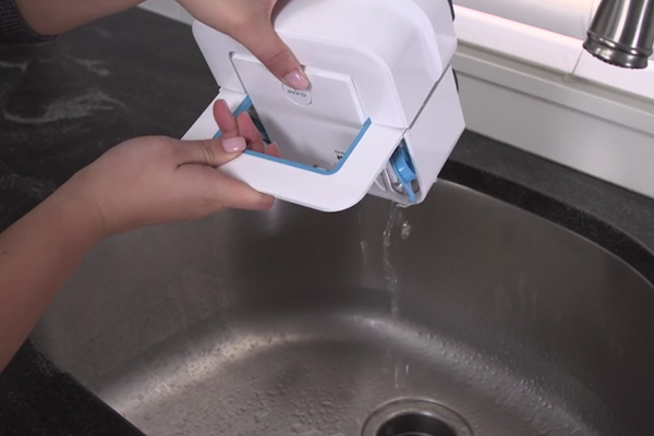 Para não danificar acidentalmente a lavagem do robô, apenas água limpa deve ser derramada no recipiente, conforme o fabricante adverte no manual de instruções.