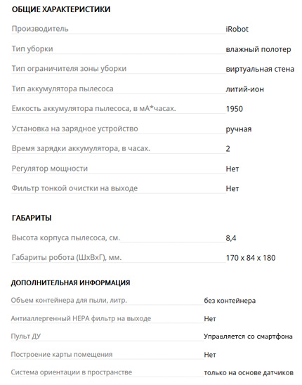 Os proprietários da máquina de lavar roupa Braava Jet 240 respondem com gratidão a ele. Eles observam o rigor da limpeza, excelente orientação espacial e compacidade incrível.