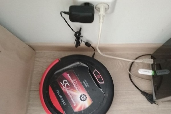 Não há base para carregamento no kit, existe apenas um adaptador que funciona a partir de uma rede de 220 V. Portanto, assim que a bateria estiver completamente descarregada - e isso acontece após 55 minutos ou mais - você deve configurar manualmente o dispositivo para recarregar. O robô sempre "absorve" poeira com a mesma potência - 14 watts, não é regulada.