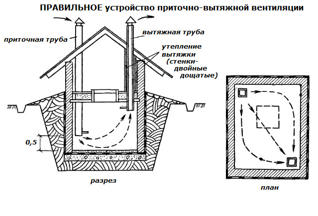 Embora existam várias variedades de capuzes, a ventilação no porão é uma maneira natural. Proporciona uma troca efetiva de massas de ar para um grupo com uma área de até 50 m2.