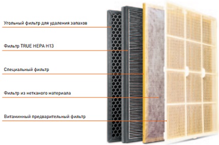 - Fotocatalítico. As impurezas tóxicas se decompõem sob a influência da radiação UV. Eficiência de limpeza - até 99%.