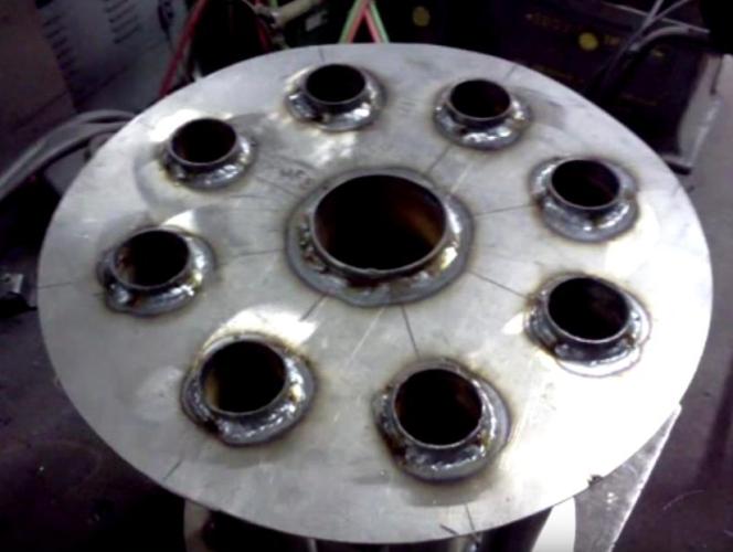 É um tambor com tubos perpendiculares chaminé de combustão. O aço inoxidável não foi escolhido por nada - tolera facilmente altas temperaturas, é bem limpo e não queima.