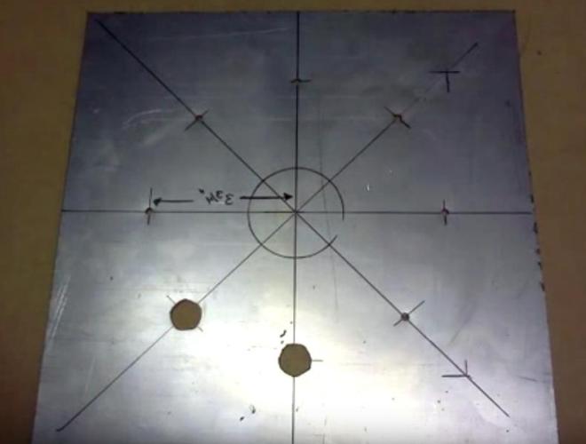 - Chapa de metal com 2 mm de espessura (para fabricação de 2 placas redondas e um invólucro);
