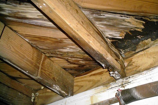 A umidade na área do espaço sob o teto pode provocar chuva e neve, trazidas sob o teto por um vento forte. A partir das instalações, a construção tem um efeito negativo nos vapores domésticos. O isolamento úmido perde suas características operacionais e, em seguida, a caixa e a estrutura do caixote de madeira começam a desmoronar.