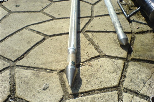 - Ponta de açousinado em um torno. O comprimento da peça é 10-12 cm, Ø 1-2 cm mais longo que o Ø do tubo, de modo que o atrito do solo no porta-malas não diminua a velocidade do processo de condução. A ponta pode ser cônica ou piramidal, mas não soldada a partir de pedaços de tubos em forma de cunha.