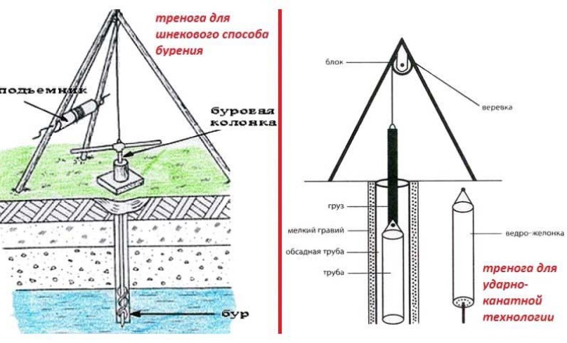 Os métodos de perfuração com rotação por choque e corda de choque são eficazes ao organizar poços em solos soltos cujas partículas não estão interconectadas. Ambos os métodos são adequados para perfurar e extrair solos argilosos: barro arenoso, barro.