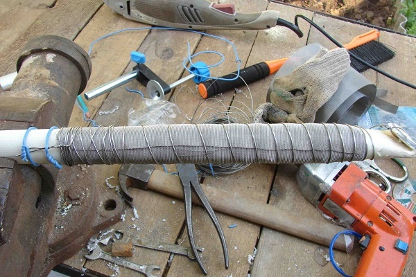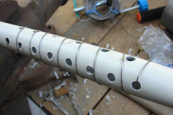 A extremidade rebaixada do poço está equipada com um filtro. Como filtro, é usada uma malha de aço inoxidável, que é soldada ou soldada ao primeiro elo da coluna de tubos antes de mergulhá-la em areia grossa misturada com seixos.