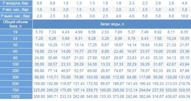 Para as necessidades domésticas, geralmente é suficiente um dispositivo com capacidade entre 25 e 50 litros. Obviamente, o valor calculado raramente coincide com os volumes reais dos modelos típicos de acumuladores hidráulicos.