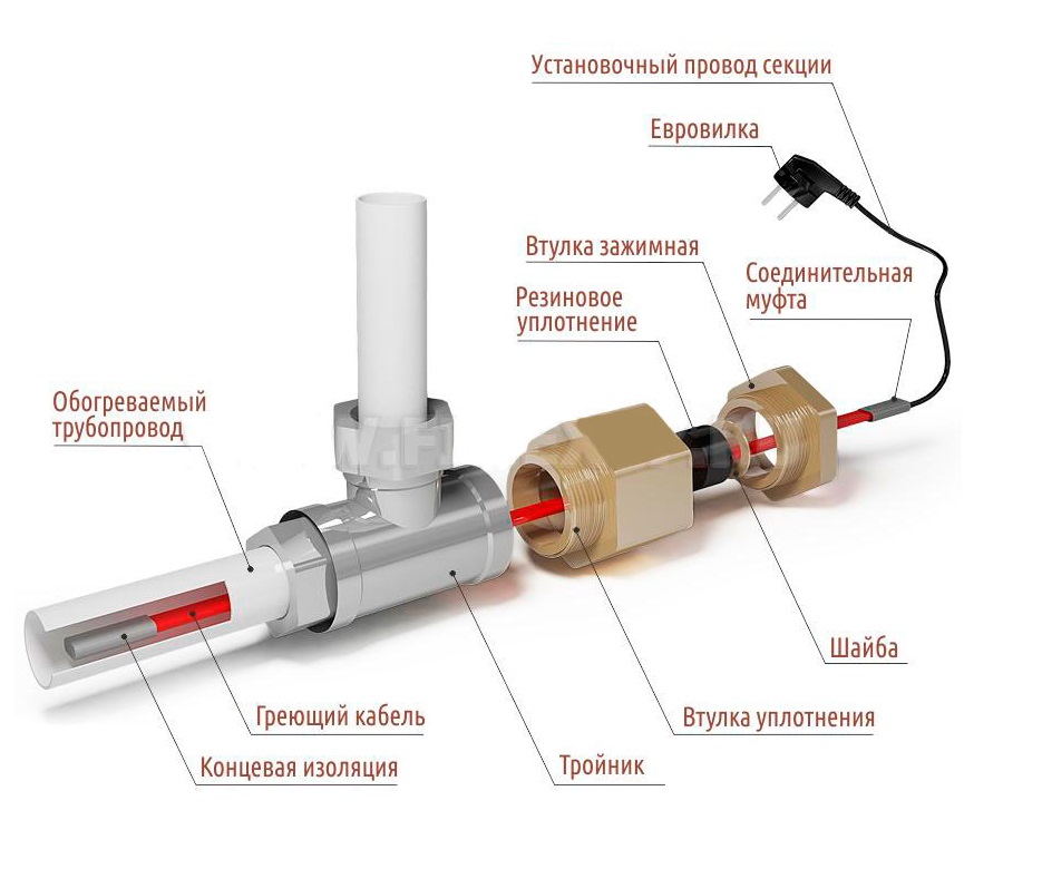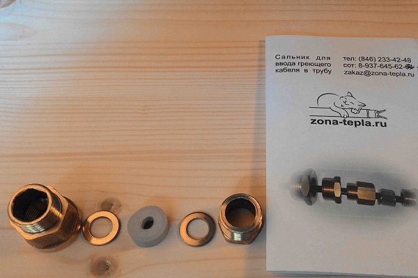 Ao comprar um cabo, determinamos imediatamente a metragem correta, que é igual ao comprimento do tubo que precisa de aquecimento. Juntamente com o cabo, é melhor comprar os consumíveis necessários para a instalação: um conjunto de acoplamentos, um retentor de óleo e uma seção de fio com um plugue de euro.