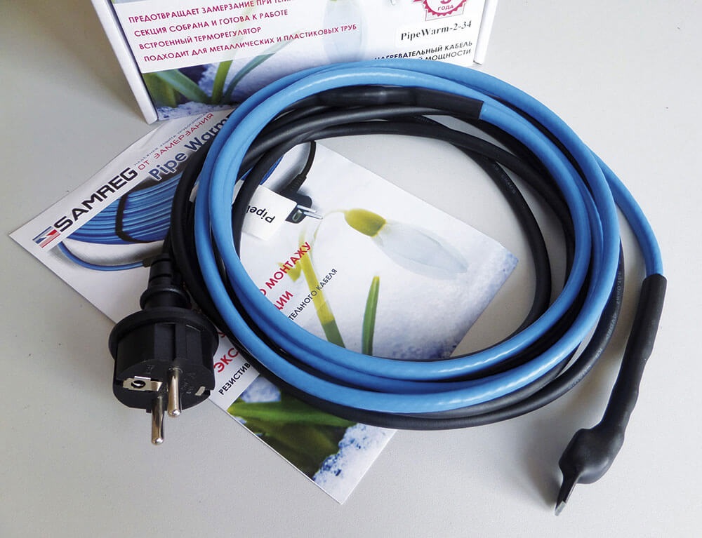 A segunda opção é mais cara, mas mais fácil de instalar. Cabo auto-ajustável vendido na baía, se o comprador cortar um determinado comprimento ou se houver versões prontas do sistema de aquecimento, equipadas com um cabo de alimentação.