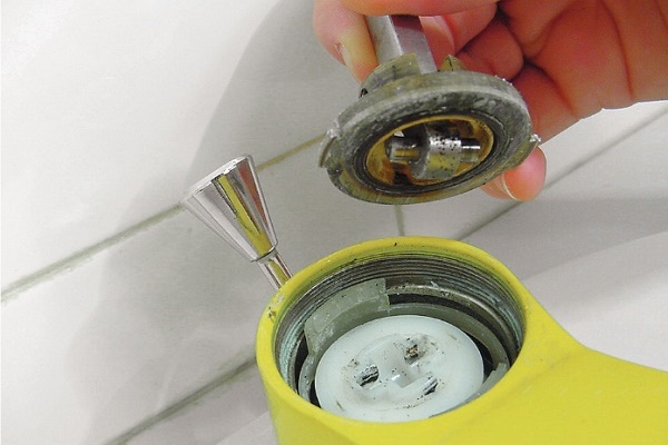 Il est nécessaire de commencer le remplacement de la tête de commande de la vanne avec l'eau qui se chevauche dans la maison. Le problème de l'écoulement des soupapes à tête de soupape est le défaut ou la détérioration du joint adjacent à la selle du corps du mélangeur. Pour le remplacer, il est nécessaire d'effectuer une série d'actions séquentielles.