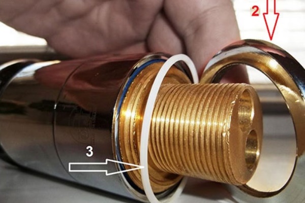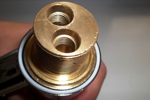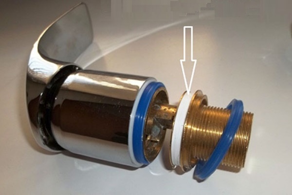 Une autre cause de fuite dans l'espace entre la soupape et le robinet peut être l'apparition d'une petite rainure ou d'une rayure le long du bord du boîtier du mélangeur sous le joint de la tête de réglage. Si de tels défauts sont détectés, poncez doucement toute la surface annulaire jusqu'à ce que les rayures disparaissent, puis réinstallez le boîtier de la grue.