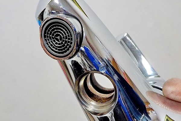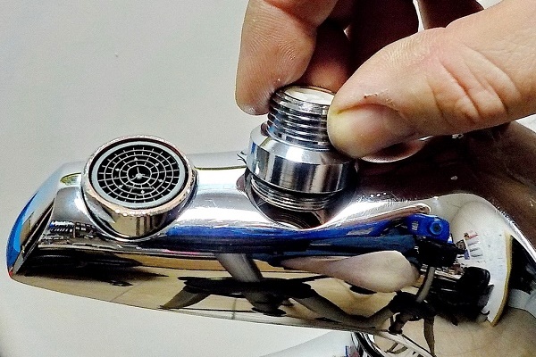 Après avoir nettoyé et rincé le mécanisme de commutation, il reste à "gérer" la pression. Il s'est avéré qu'il suffit pour cela de nettoyer l'aérateur du bec:
