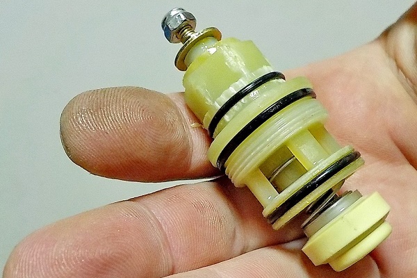 Si des déformations du bouchon conique, qui sert à mélanger l'eau des tuyaux d'alimentation en eau chaude et froide, sont détectées, il doit être remplacé. Lors de l'élimination de toute panne, le débit d'eau est toujours bloqué. La photo suivante montre comment retirer le commutateur: