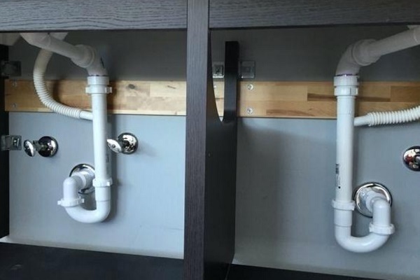 Si vous le souhaitez, deux siphons séparés peuvent être installés. Une telle solution est avantageuse en ce que les siphons indépendants les uns des autres sont moins obstrués en fonctionnement. Mais gardez à l'esprit qu'un tel système nécessitera beaucoup d'espace.