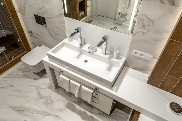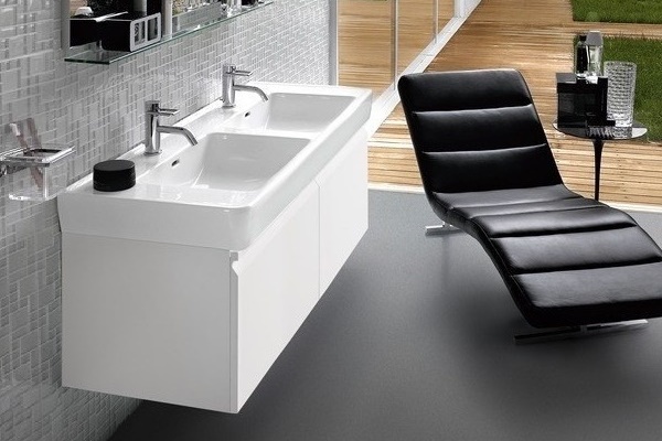 Un double lavabo permet d'augmenter le débit de la salle de bain, ce qui est si important le matin, lorsque tous les membres de la famille essaient de prendre rapidement des procédures d'eau.