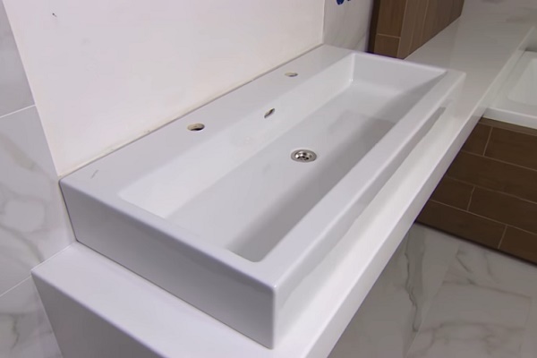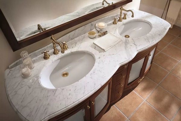 Comme alternative valable à une pierre naturelle noble, une pierre artificielle peut agir. Il s'agit d'une composition composée à 80% de copeaux de pierre et les 20% restants sont des colorants et un polymère de liaison. Les paramètres de fonctionnement du matériau composite ne sont pas inférieurs à la pierre naturelle. Et au prix des appareils de plomberie sortent parfois moins cher.