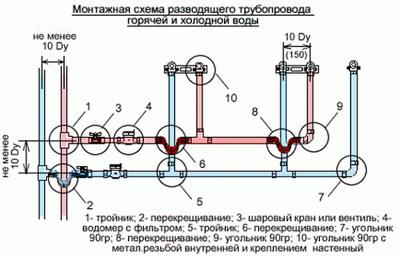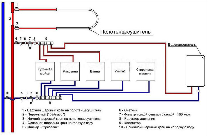 Distribution d'eau dans l'appartement: schémas typiques + nuances de conception