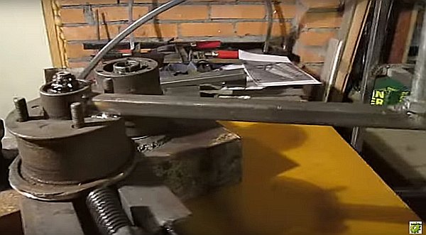 Un autre cintreur de tuyaux unique des artisans est un outil assemblé à partir d'un profilé métallique et de moyeux automobiles. Sa conception est massive et simple, ce qui vous permet de ne pas vous soucier des pannes lors du fonctionnement.