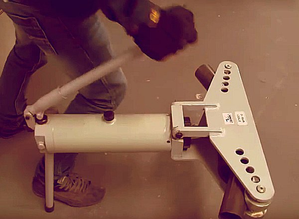 - Entraînement hydraulique. La plupart du temps, ces outils sont fabriqués sur un type d'arbalète et ils sont conçus pour former un coude local.