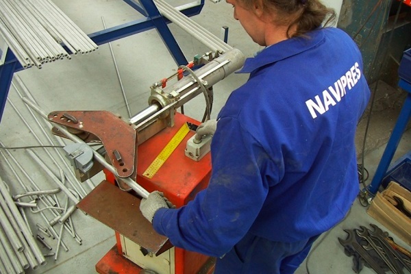 Pour faciliter l'utilisation, l'outil est complété par un trépied et des roues. Un dispositif de cintrage de tubes ronds est prévu.