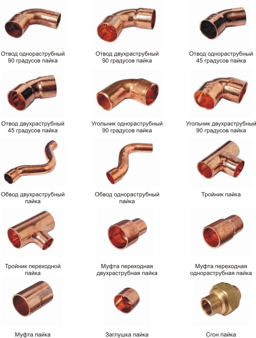 Malgré la popularité du métal-plastique et du polypropylène, les tuyaux et raccords en cuivre sont largement utilisés pour l'installation de réseaux de chauffage et d'approvisionnement en eau. Ils sont considérés comme la meilleure option pour équiper les équipements de réfrigération et les climatiseurs.