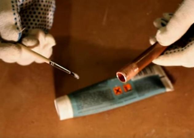 Vous aurez également besoin d'une solution de flux qui lubrifie les pièces de raccordement du raccord et du tuyau.