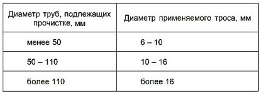 - Diamètre des tuyaux d'égout. Plus ils sont larges, plus le câble doit être large, sinon il risque de se tordre.