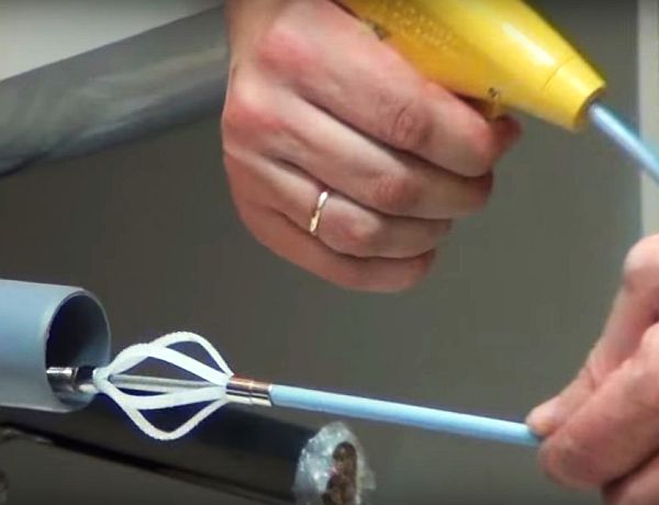 Loin de chaque câble de plomberie est équipé d'une pointe spéciale pour nettoyer les tuyaux des débris. Mais à la fin d'un fil machine bon marché, vous pouvez faire une "rose" vous-même, après avoir rembobiné la zone à 5-6 cm du bord avec du fil de cuivre afin que le câble ne s'ouvre plus.