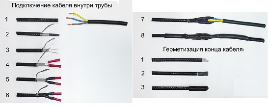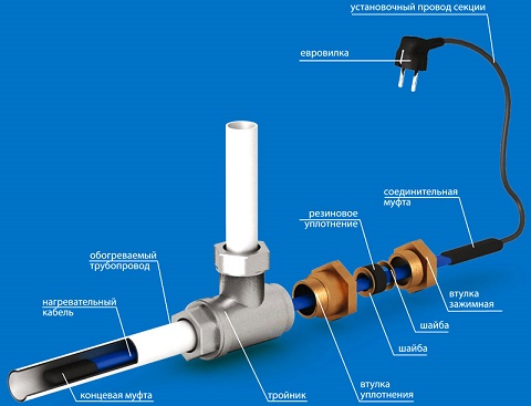 Pour joints de câble chauffant à l'intérieur du tuyau choisissez un câble avec une protection spéciale contre les influences agressives, par exemple DVU-13. Dans certains cas, pour une installation à l'intérieur, utilisez la marque Lavita RGS 30-2CR. Ce n'est pas tout à fait la bonne solution mais acceptable.