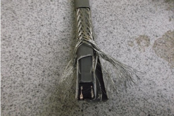 Environ 80 mm doivent être nettoyés de l'isolant et de la gaine et divisés en fils séparés. Les extrémités résultantes sont coupées à 35 mm, mais un fil ne doit pas être coupé pour la mise à la terre. Les fils de 6 mm sont également dénudés ici.