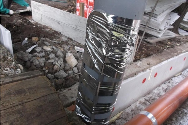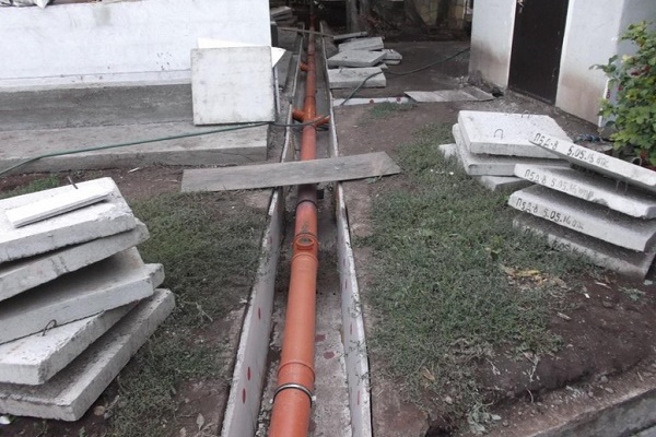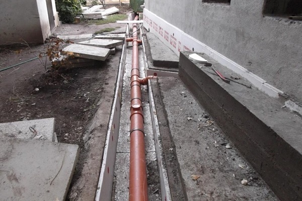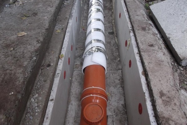 Pour que le fonctionnement du système électrique de chauffage soit efficace et vise directement à maintenir la température positive du tuyau d'égout, les communications sont établies dans une tranchée isolée: