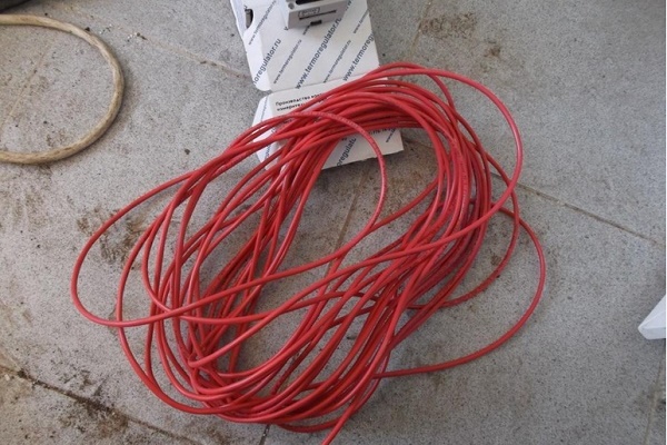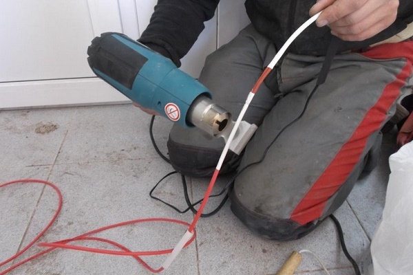 Les capteurs de température sont installés une fois l'isolation fournie. Par le haut, il est recommandé d'appliquer un marquage qui reflète la position des éléments chauffants. Pour connexion du câble chauffant au secteur, vous aurez besoin d'un morceau de tuyau thermorétractable. Ensuite, environ 50 mm d'isolant et 10 mm de tresse sont retirés du bord du câble.