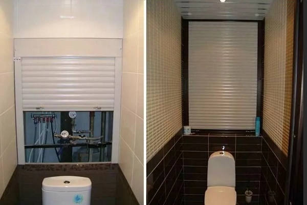 Voulez-vous rendre les canaux de communication invisibles, mais en même temps leur laisser un accès gratuit? Les stores et les volets aideront à résoudre la tâche. Pour accéder à la valve ou au comptoir, il vous suffit de soulever le rideau d'un seul mouvement de la main, offrant un accès complet à l'équipement.