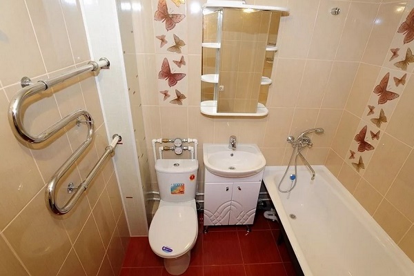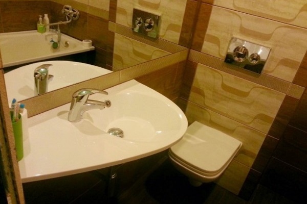 Nous, comme la plupart des gens, sommes confrontés à ce problème. Nous avons l'appartement de Khrouchtchev, dans lequel la salle de bain est située en conjonction avec les toilettes. L'espace est catastrophiquement petit. Par conséquent, la réparation a été confiée à des professionnels. En conséquence, il a été possible de maintenir les dimensions internes dans des proportions presque standard. Merci au changement dans la pose initiale des tuyaux.