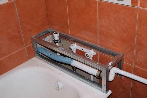 À l'aide d'une boîte en placoplâtre, vous pouvez disposer un écran sous la baignoire. Une variété de façons de masquer l'espace sous la salle de bain est présentée dans cet article.