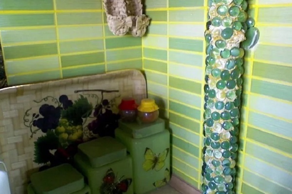 Les tuyaux de masquage avec des carreaux et des mosaïques semblent appropriés dans les salles de bains, surtout s'ils sont faits du même matériau écran de salle de bain.