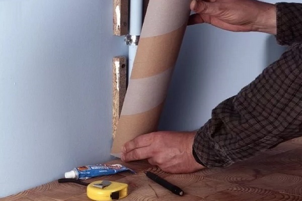- Des marquages sont appliqués sur la surface du sol et des murs. Ayant déterminé le long de la surface verticale le point le plus saillant des communications, ils s'en éloignent de 3 à 5 cm et tracent une ligne.Par le même principe, ils marquent la surface horizontale.