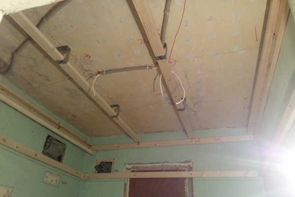 - Un cadre est construit à partir de lattes de bois ou de profilés métalliques, le fixant au sol, avec les murs du plafond.