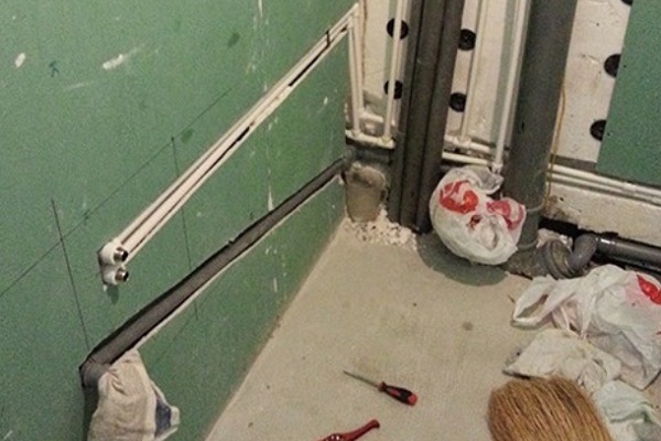 L'un des moyens les plus chronophages est acheminement des tuyaux dans la salle de bain d'une manière cachée. Mais cela permet de "tuer deux oiseaux avec une pierre": masquer les communications disgracieuses et rendre la salle de bain plus spacieuse.