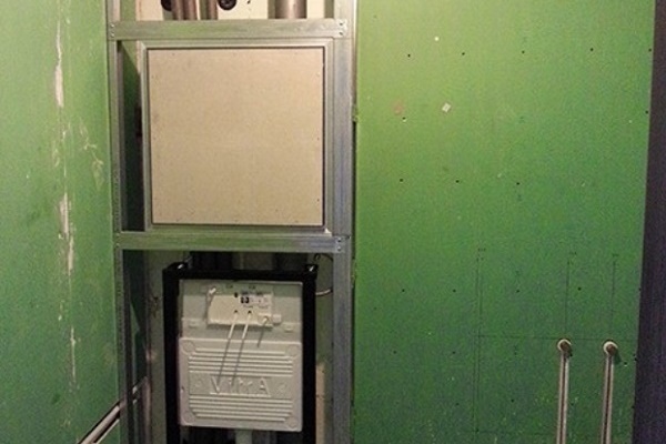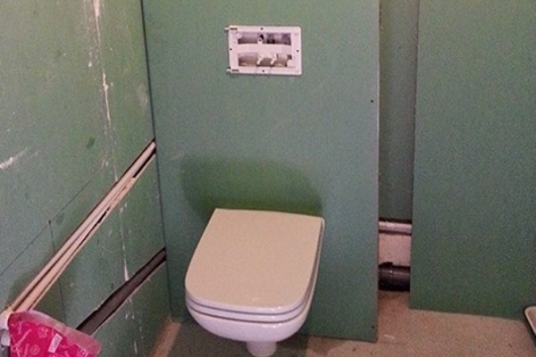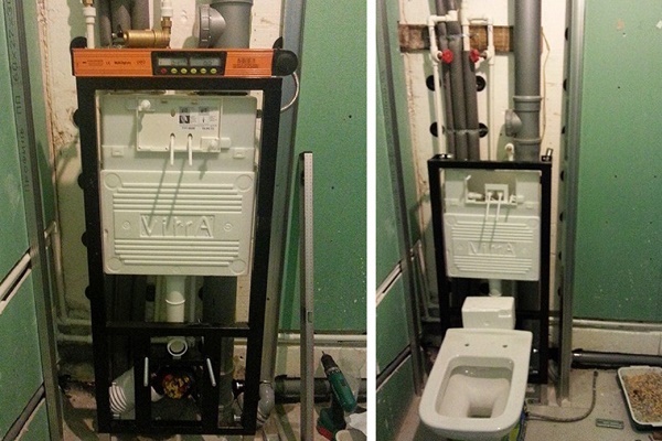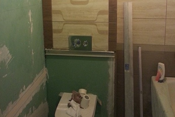Les étapes de masquage des communications lors de l'installation d'une toilette suspendue dans une salle de bain mixte seront présentées par la sélection de photos suivante: