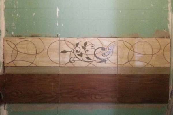 - Les carreaux sont posés sur le dessus de la maille. Elle est également collée avec une trappe de service.