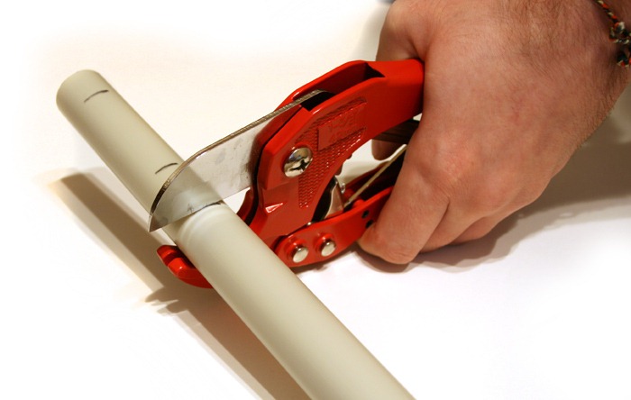 - La longueur de tuyau requise est préparée - utilisation pour la coupe coupe-tube pour tuyaux en plastique.
