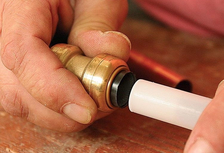 Le tuyau sur le raccord doit être complètement inséré. Pour éviter que la plomberie ne fasse des erreurs ici, de nombreux raccords à sertir ont de petits trous à travers lesquels le plastique blanc est parfaitement visible. Il suffit de faire un petit effort, puis de serrer le raccord avec une pince.
