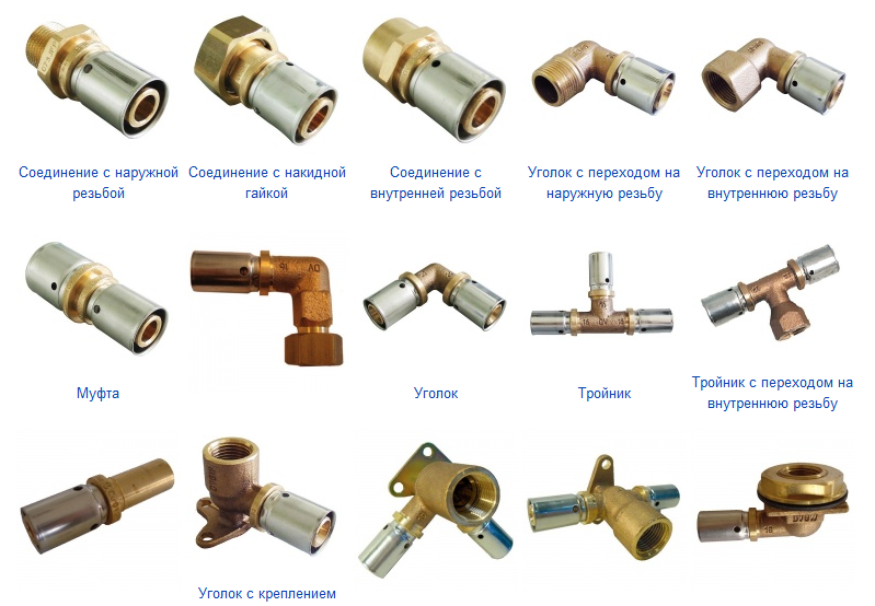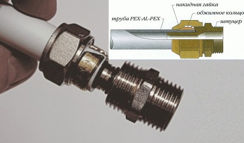 Les tuyaux métal-plastique sont reliés par des raccords à compression pour le serrage et leurs analogues pour le sertissage. L'installation de pipelines dans les deux cas ne nécessite pas d'équipement sophistiqué et de qualifications élevées de la part du maître.